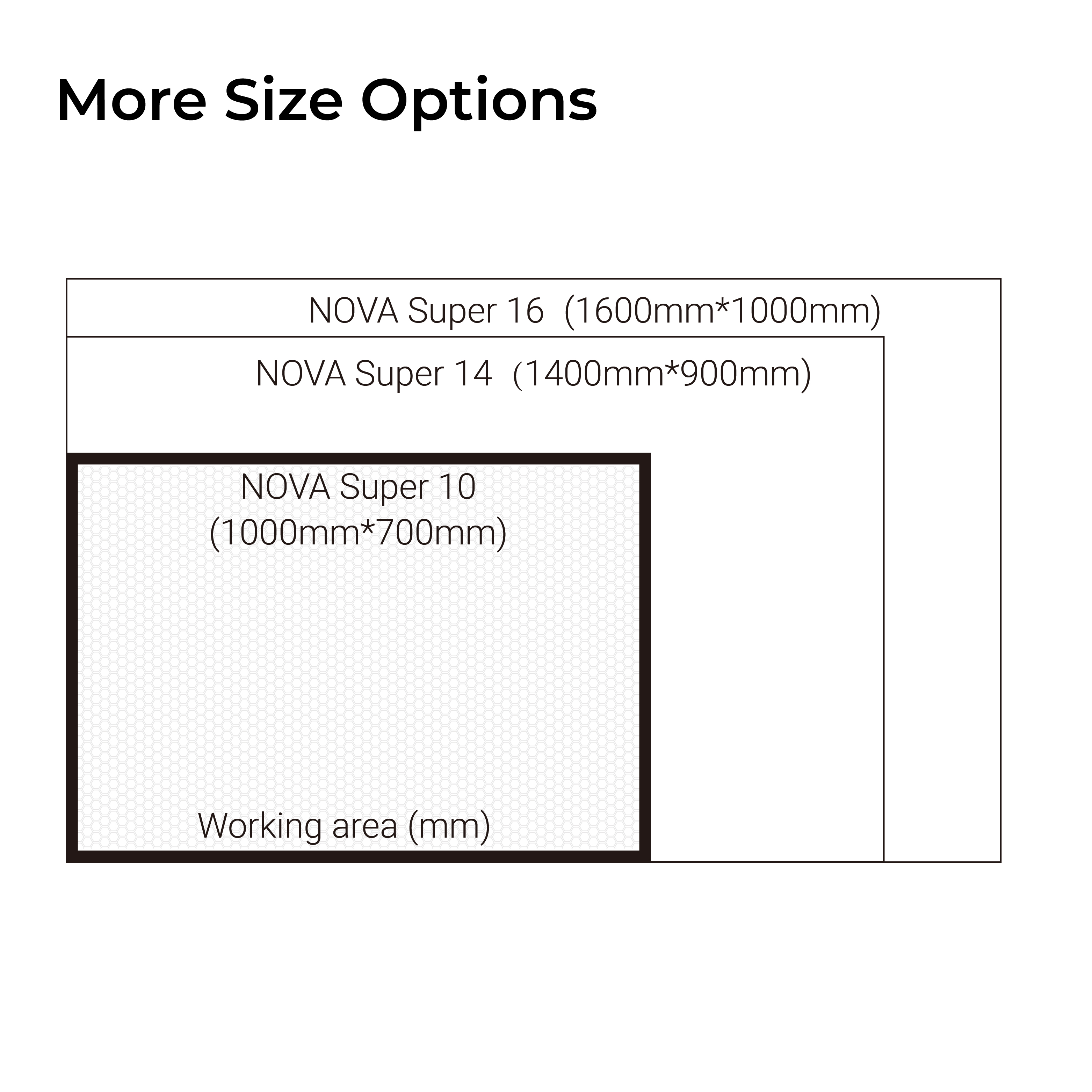 | Working Scope | Working Area (mm) | 1000*700mm | 1400*900mm | 1600*1000mm |